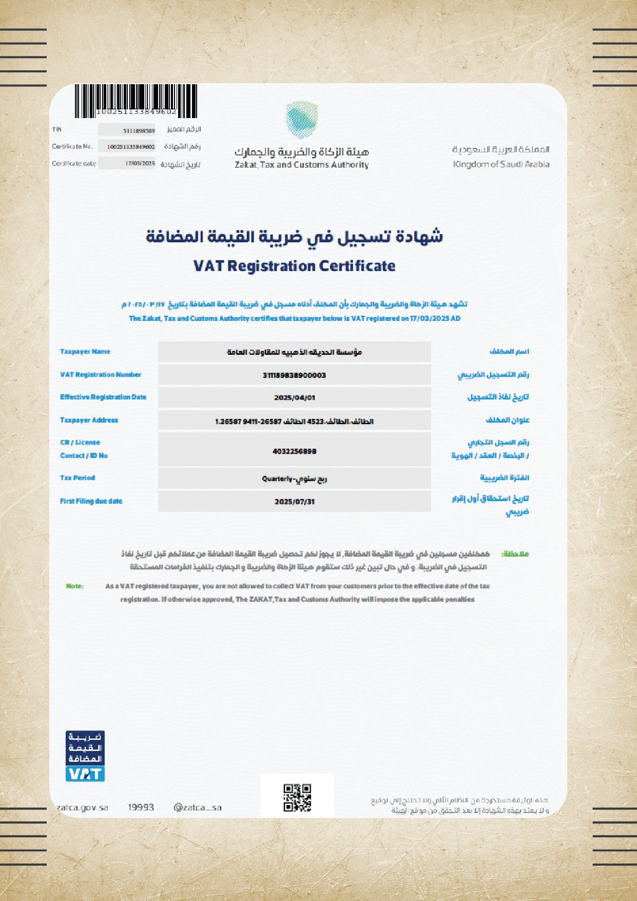 • السجل التجاري خاضع لوزارة التجارة بالمملكة العربية السعودية رقم : 4032256898