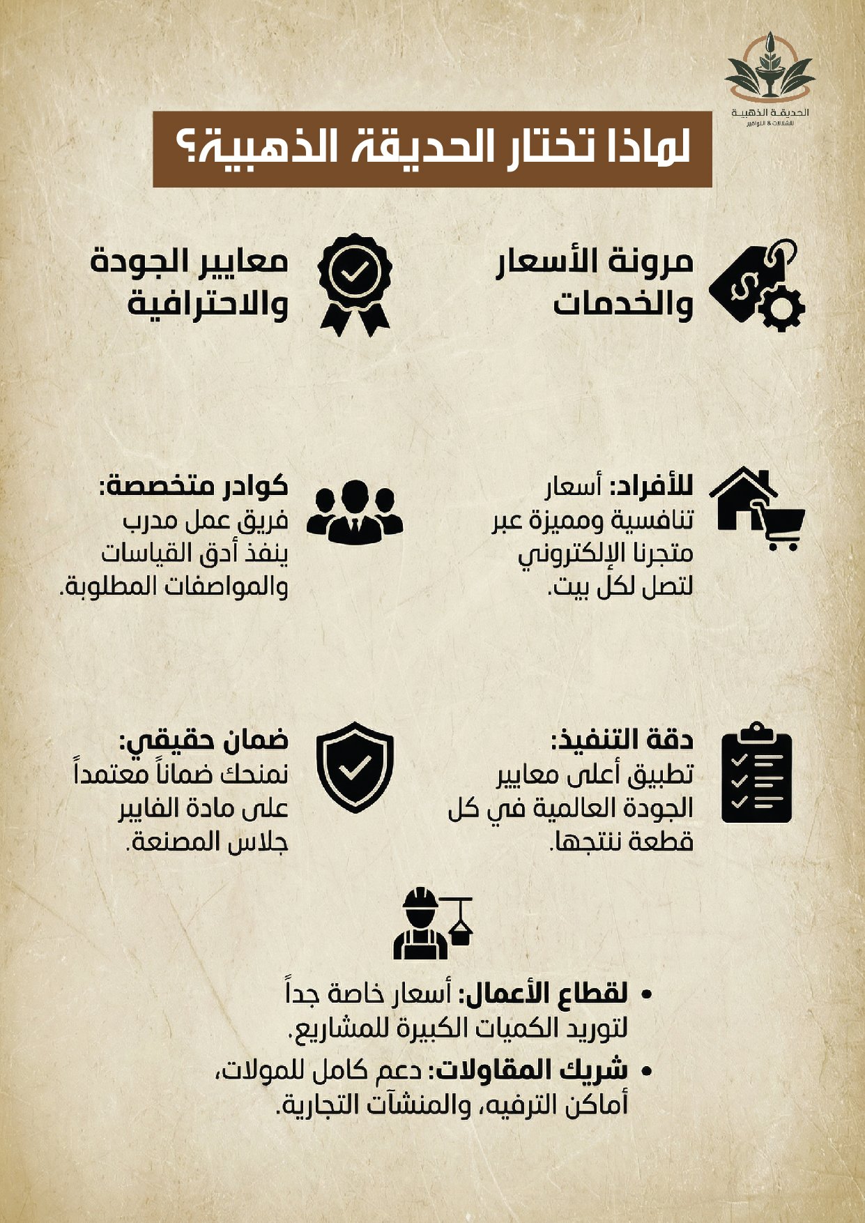 الحديقة الذهبية هو متجر إلكتروني تابع لمصنعنا متخصص في تصنيع ما يلي: